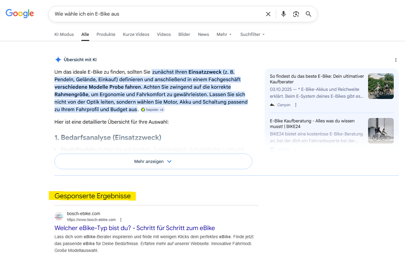 Wo erscheinen Search Ads in KI-generierten Suchergebnissen?